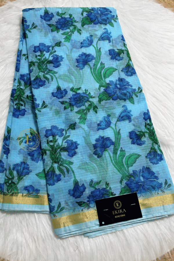 A refreshing blend of elegance and comfort, this Kota Cotton Saree features a beautiful blue base adorned with vibrant blue floral prints. The lightweight Kota weave makes it extremely easy to drape, while the shimmering zari border adds a touch of festive richness. Perfect for daytime events, casual gatherings, workwear elegance, and gifting. Comes with a matching running blouse for a complete coordinated look.